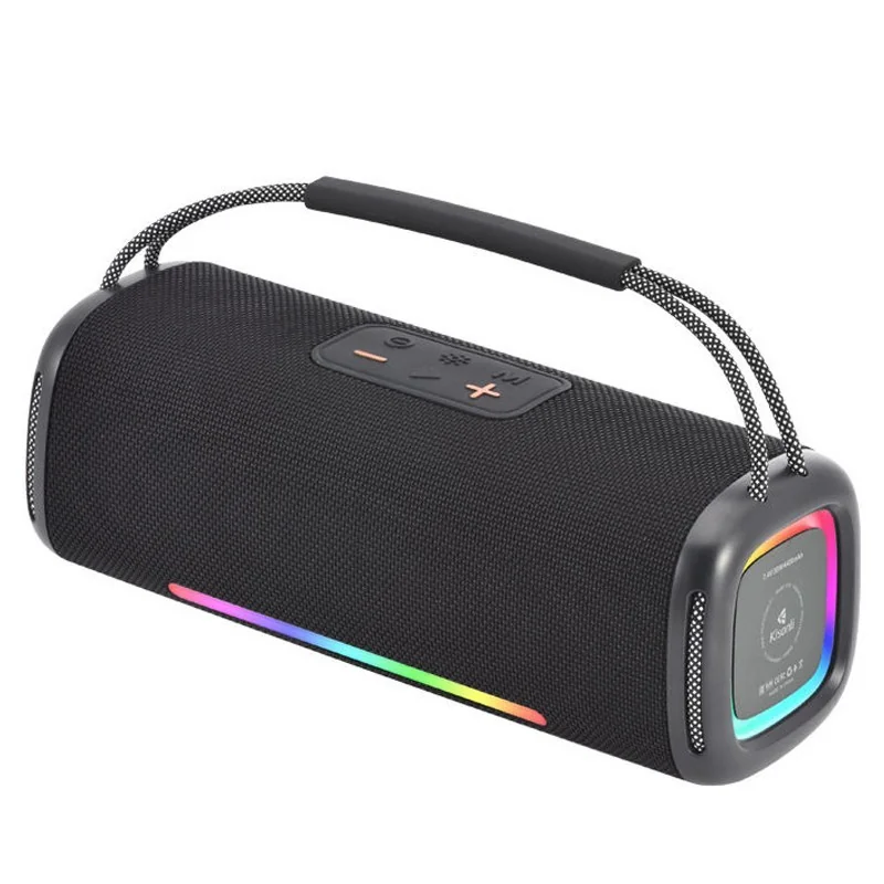 HAUT-PARLEUR Kisonli K10 -Puissance : 30 W – Connectivité : Bluetooth 5.3 sans fil – Interfaces : Aux / USB / TF – Batterie : 4400 mAh – Autonomie : 6 à 10 heures – Temps de charge : 4 à 6 heures – Matériaux : Silicone + ABS + tissu – Portée sans fil : 10 m – Alimentation : USB 5V CC – Port de charge : Type-C – Dimensions : 27 × 10 × 12 cm – Couleur : Noir – Garantie : 1 an