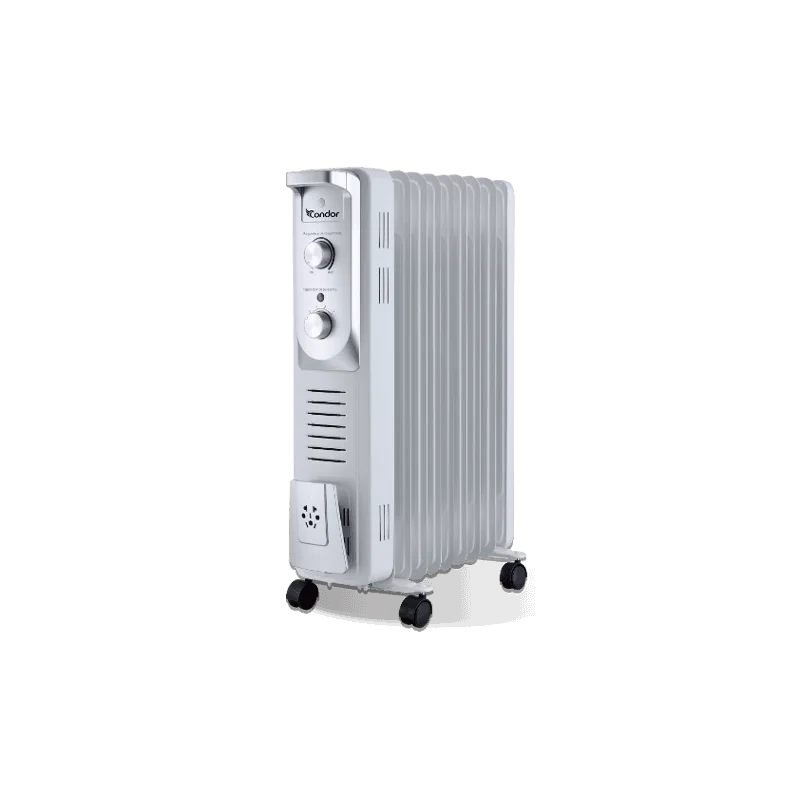 Radiateur Bain d'huile Condor 11 éléments - Puissance: 2550W - 3x Niveaux de température - Extinction automatique - Roulettes - Couvercle arrière - Humidificateur - Thermostat ajustable - Témoin d’alimentation - Poids Net: 15.8 kg - Dimensions: 63 x 24 x 66 cm - Garantie: 1 an - Livraison "Gratuite"