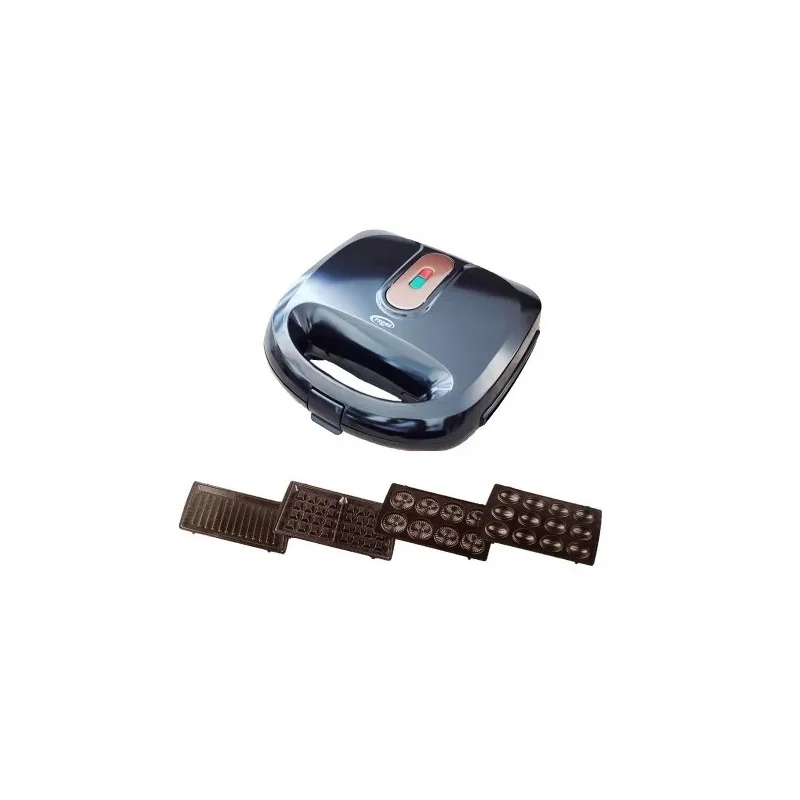 Appareil Panini Prova 4en1 - Puissance: 750 W - Revêtement: Antiadhérent, Granit - 2 témoins de lumière: Fonctionnement et prêt à l'emploi - Sans BPA - Nombre de plaque interchangeable: 4 plaques (Panini, Gaufre, Zouza et Maamoul) - Nombre de tranches: 2 tranche - Accessoires: Plaque panini compatible au lave vaisselle - Fonction: Panini, Gaufre, Zouza et Maamoul aux dates - Fonctionnement: Témoin lumineux - Poigné: Ergonomique (résistante à la chaleur) - Système de verrouillage - Pieds: Antidérapantes - Couleur: Noir et doré - Garantie: 1 an