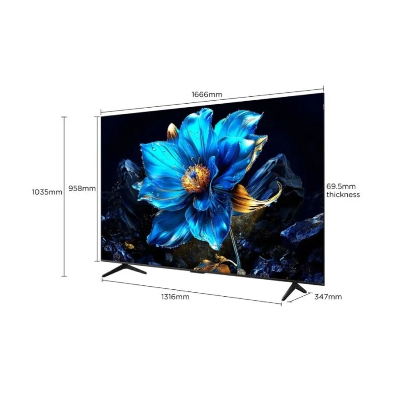 Tv TCL 75" Smart P7K 4K UHD - Résolution: 3840 x 2160 pixels - Miracast et Google TV - Format d’image: 16:09 - Taux de rafraîchissement: 60Hz IA Clarity | 120Hz en Full HD - Dolby Vision -Dolby Atmos - HLG - HDR 10 - Cristal quantique coloré (Plus d'un milliard de teintes de couleurs) - MEMC: réduit les flous d'affichage de mouvement - Puissance sonore: 2x15W - Google Assistant, Alexa - Connectivité: Wi-Fi 2.4G/5G, Bluetooth 5.4 - Design Slim Ui-body - Connecteurs: 3 x HDMI | 2 x USB-A | 1 x Ethernet (LAN) - Dimensions avec support: 1666x1035x347 mm - Poids avec support: 23.2 kg - Couleur: Noir - Garantie: 2 ans - Livraison "Gratuite"